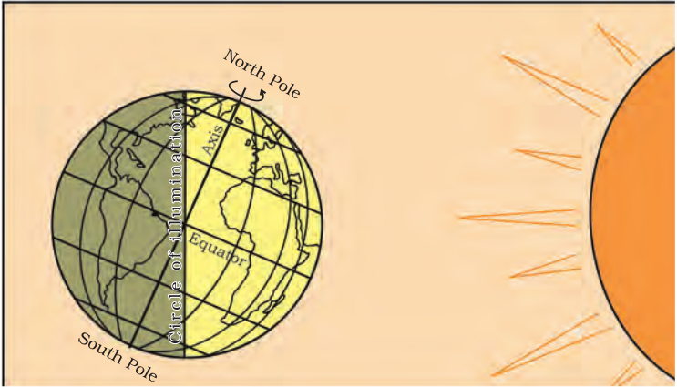 - The circle that divides the day from night on the globe is called the circle of illumination. This circle does not coincide with the axis.