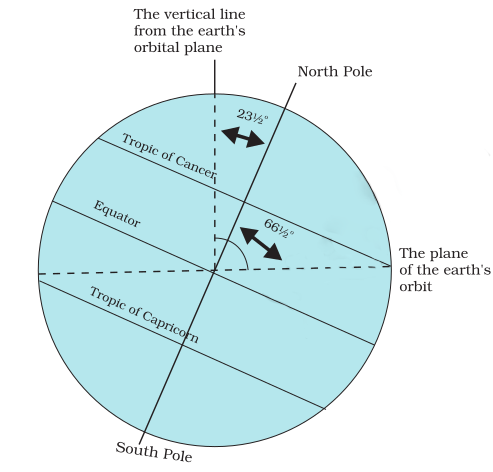 - On 22nd December, the Tropic of Capricorn directly receives the sun rays as the South Pole tilts towards it. As the sun’s rays fall vertically at the Tropic of Capricorn (23½° S), a larger portion of the Southern Hemisphere gets light. Therefore, it is summer in the Southern Hemisphere with longer days and shorter nights. The reverse happens in the Northern Hemisphere. This position of the earth is called the Winter Solstice (दक्षिणायन).